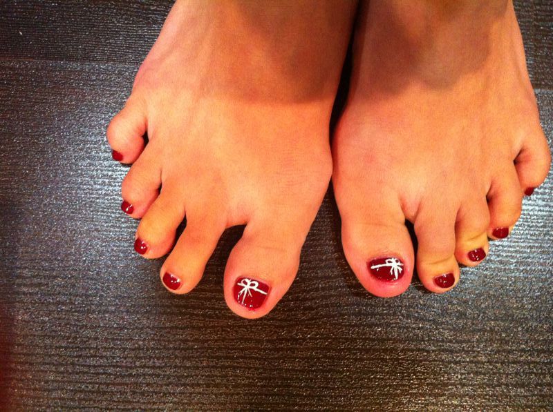 Red nails with ribbons (like a present) :)